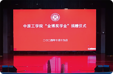 向中原工学院学校捐款100万元人民币,设立“金博奖学金”,用于资助有教育情怀的优秀大学生